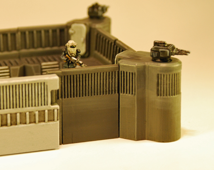 The Control Battalion figure is mounted on a large plastic base, but figures mounted on coins will look lower in relation to the walls and when standing on the ramparts.